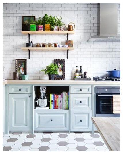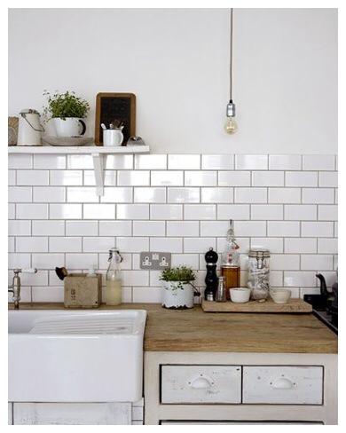 Então, eu vou a louca da decoração de cozinha pelos próximos meses, se preparem! Uma das ideias que eu tenho são azulejos em formato de tijolinhos brancos, fica super fofo e com jeitinho de cozinha de sítio.