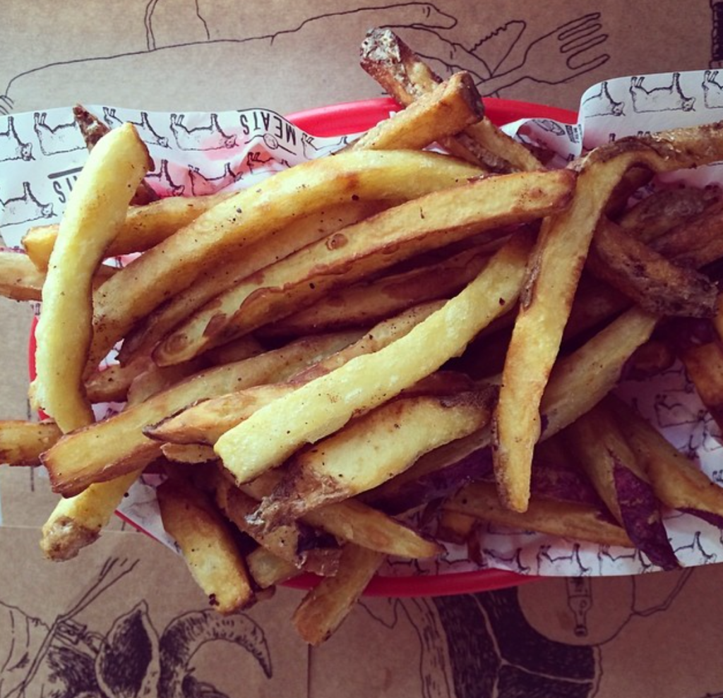 De entrada apostamos na porção de batatas fritas mas não era tão clássica assim: nossa batata normalzinha aparece acompanhada da batata doce <3