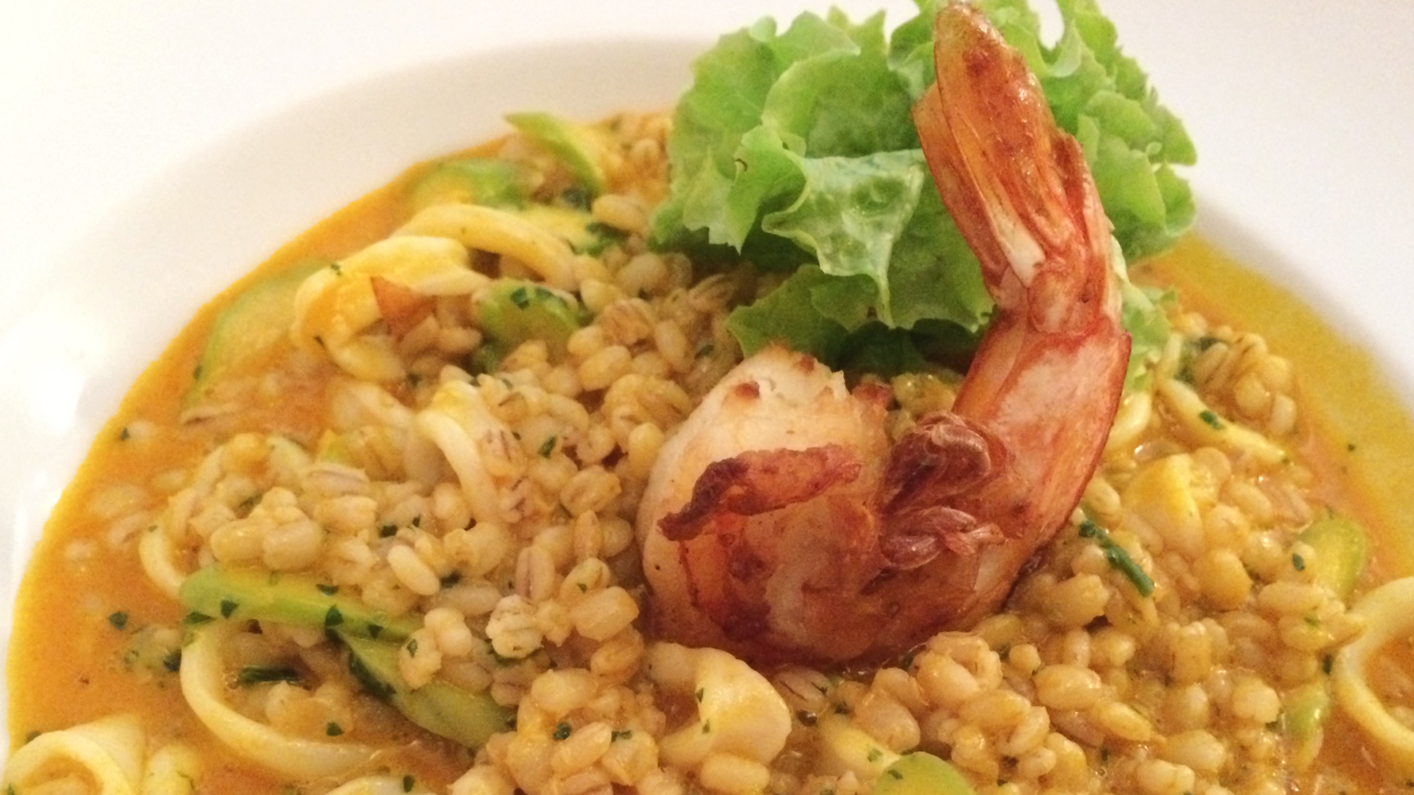 Orzotto de Lula com Aspargos e Camarão Grelhado (R$39,00)