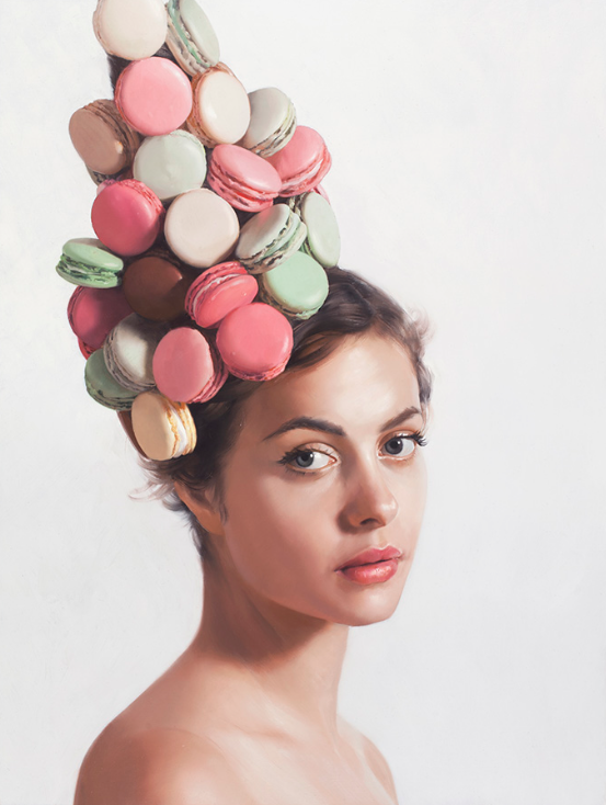 Olhando para as pinturas, você quase pode sentir o buttercream super aveludado nos bolos, ou aquela “casquinha” irresistível dos macarons.. Socorro, que fome!! Sente só o drama: