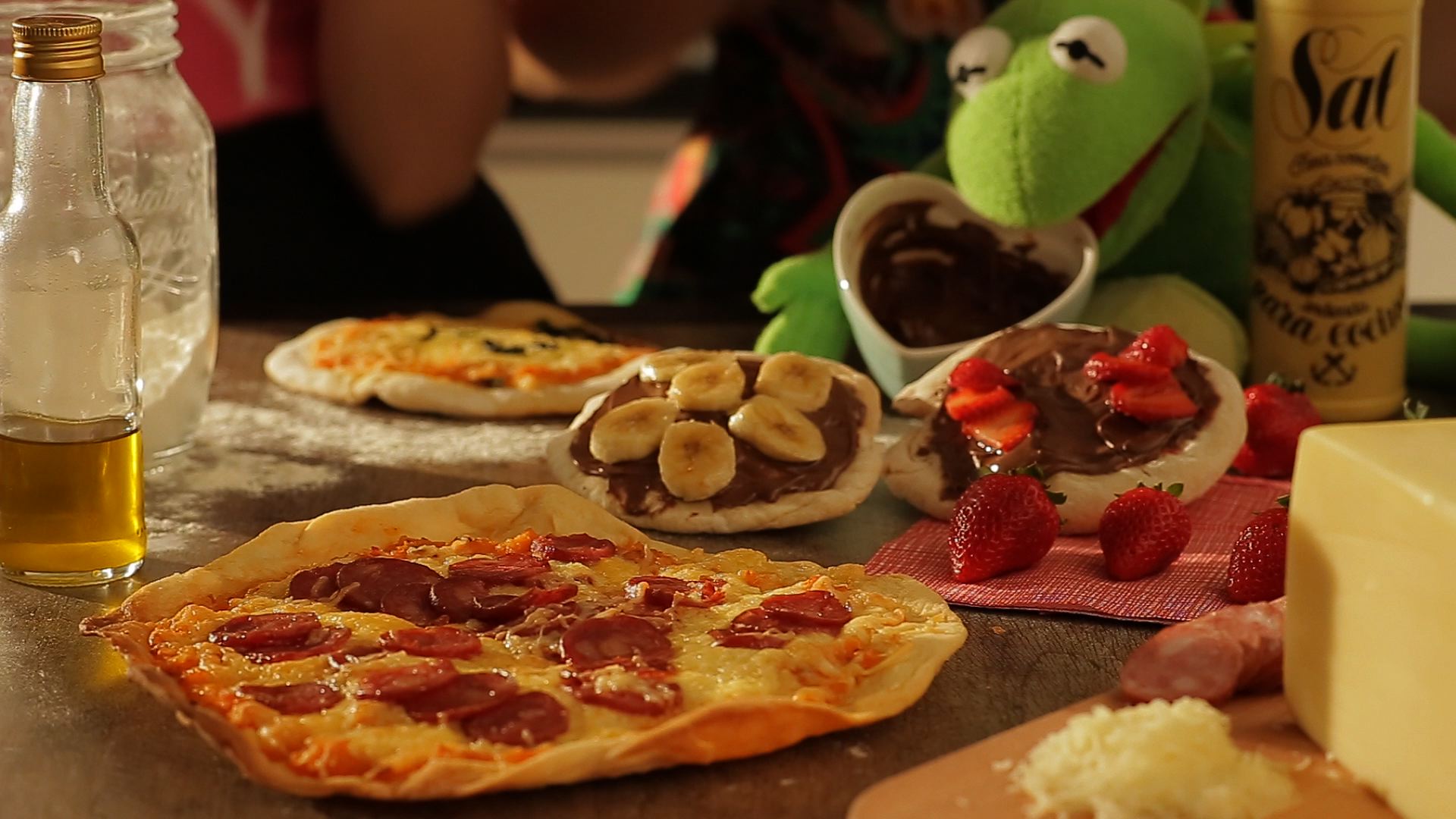 Para fazer a de Calabresa você vai precisar de: Molho de Tomate (tem essa receita aqui que fica delícia!), Calabresa em fatias finas e Queijo Mussarela ralado na hora. Se for fazer pizza doce, asse apenas a massa – até ficar bem douradinha.