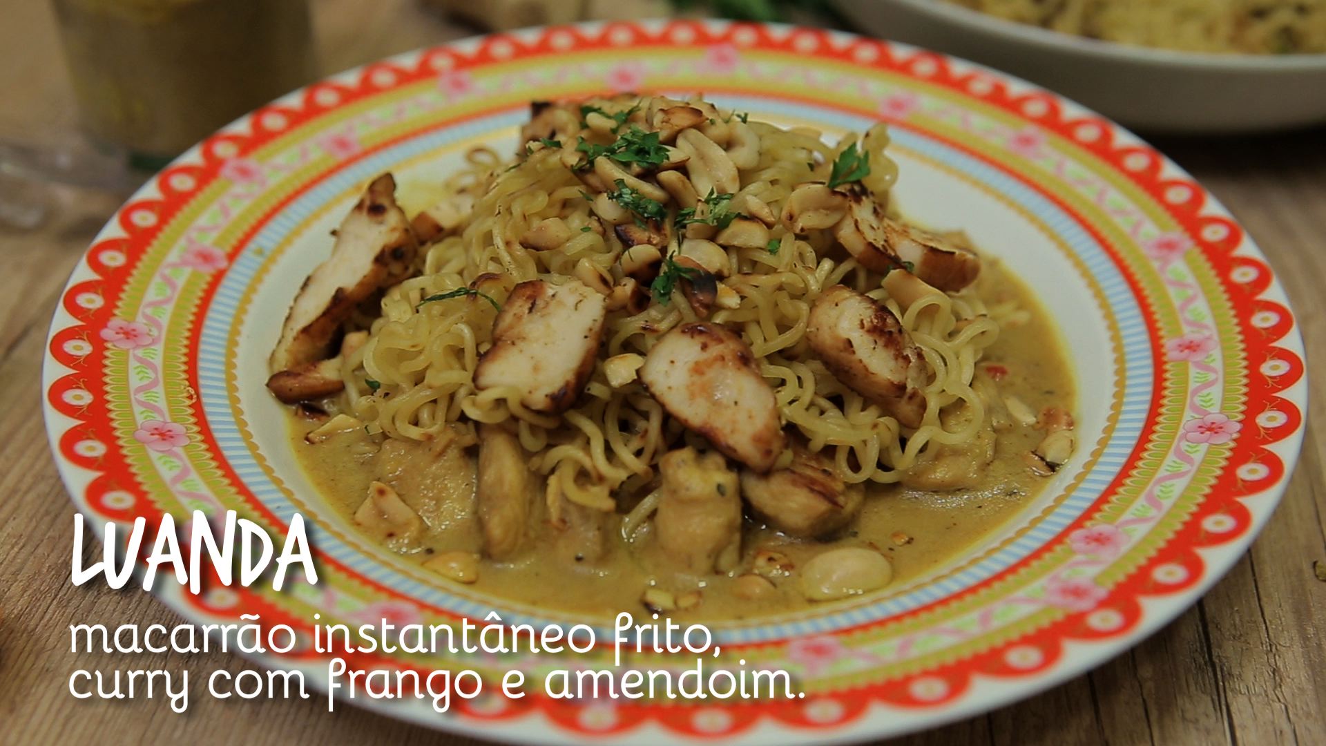 RECEITA LUANDA: Macarrão Instantâneo Frito com Curry de Frango e Amendoim