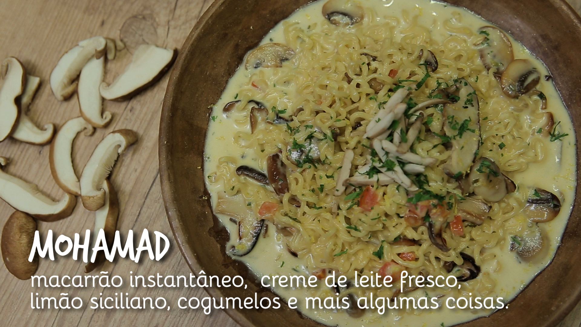 RECEITA MOHAMAD: Macarrão Instantâneo, Creme de Leite Fresco, Limão Siciliano, Cogumelo e mais Algumas Coisas.
