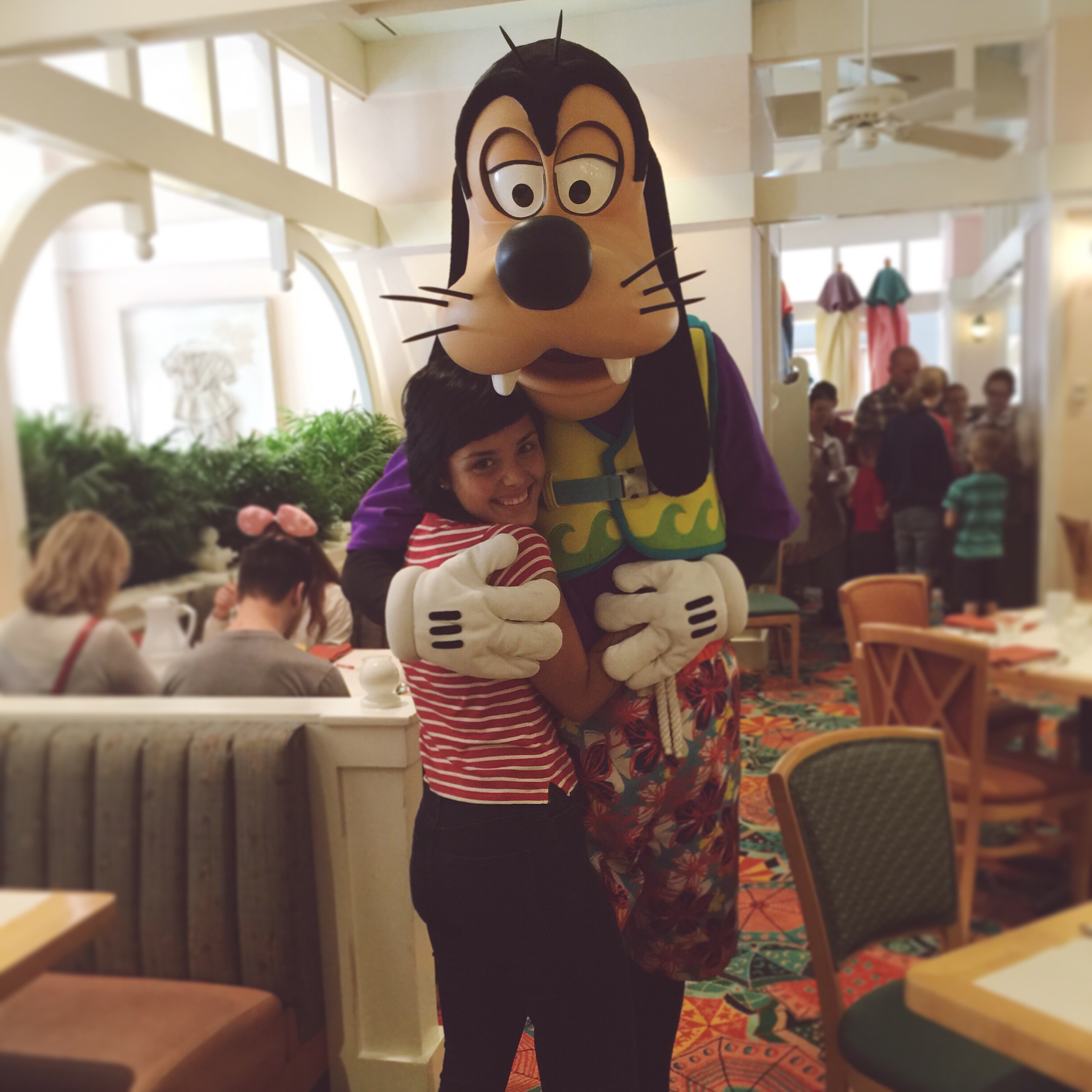 Depois de dar uma voltinha pra conhecer, me joguei no café da manhã do restaurante Cape May Cafe ! Nem preciso dizer que quase morri de emoção…além de um buffet com todas as comidinhas típicas de café da manhã americano, você recebe a visita dos principais personagens da Disney na sua mesa!!! Deu pra tirar foto com o Mickey, Minnie, Pato Donald e o Pateta…ah, também rola autografo se você pedir! :)