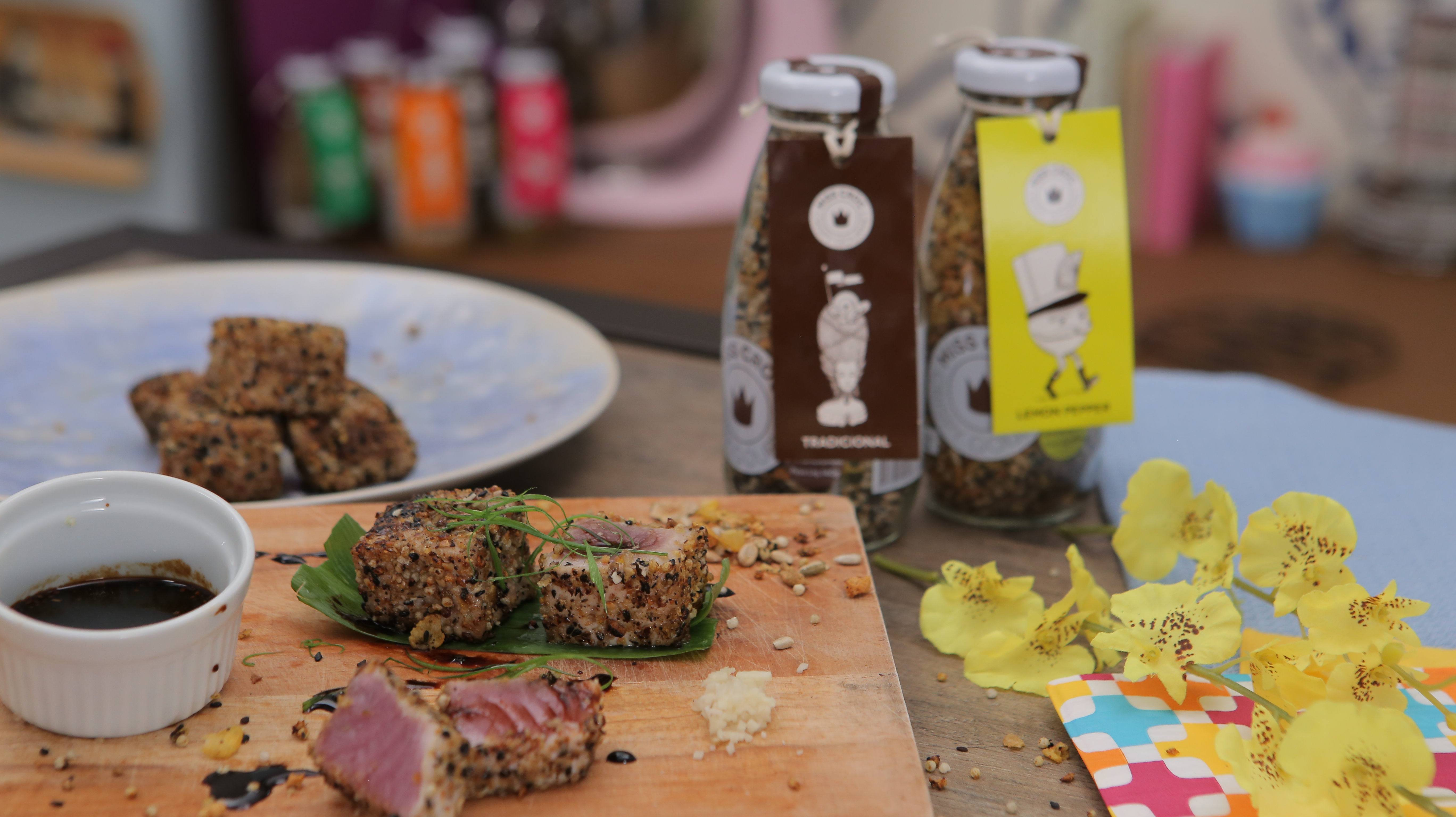 Hoje é dia de ensinar coisa (muito boa): esses cubinhos de Atum com Crispy de Lemon Pepper :)