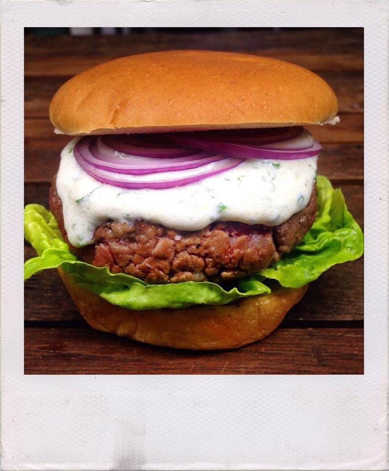 Vamo? Vai rolar hambúrguer de kibe cru com coalhada seca, cebola roxa, alface romana, no pão de hambúrguer AND barriga de porco com maionese de gengibre, farelo de torresmo e agrião, no pão sírio.