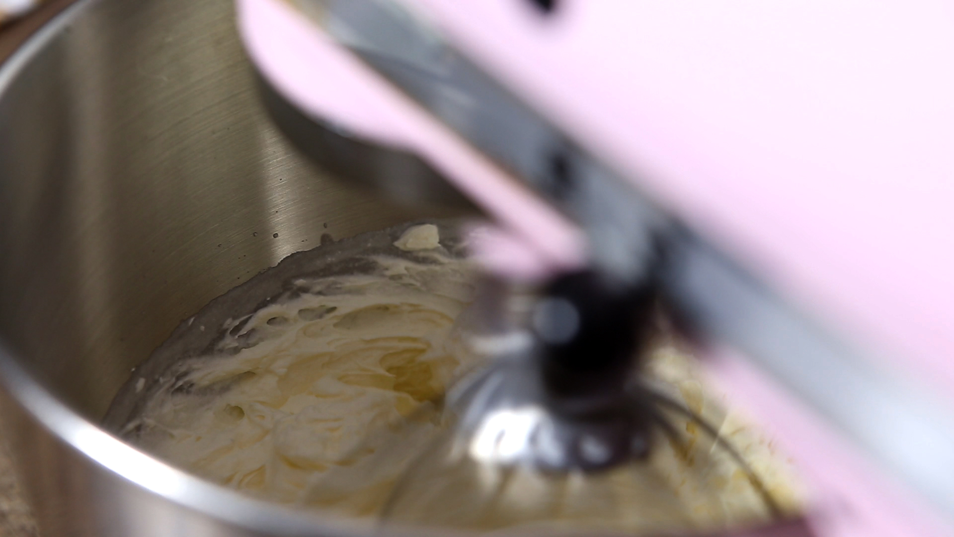 A minha batedeira é planetária, ela faz movimentos maiores e pega todas as bordinhas do bowl. Na batedeira comum, não esqueça de mexer bem, girando por todo o bowl. Se não tiver batedeira, dá para fazer com um fouet – mas aí, você vai ter que paciência e força no braço! Vai demorar bem mais…