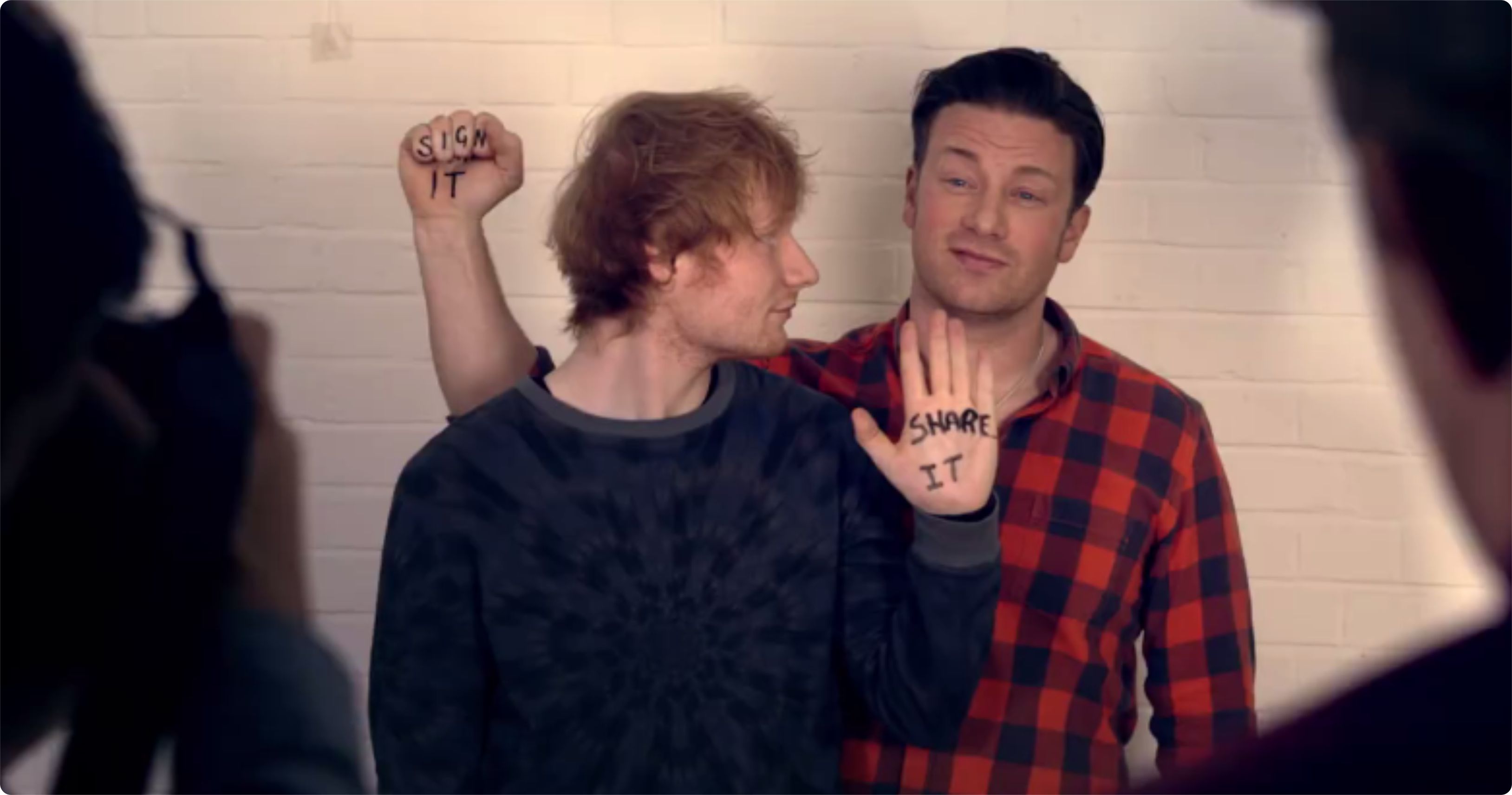 Mas a causa é nobre e justa. Hoje ele divulgou pro mundo o clipe de Food Revolution, uma canção feita em parceria com Ed Sheeran (conta também com a participação de nomes como Paul McCartney, Jammie Cullum, etc.), que será o hino do Food Revolution Day.
