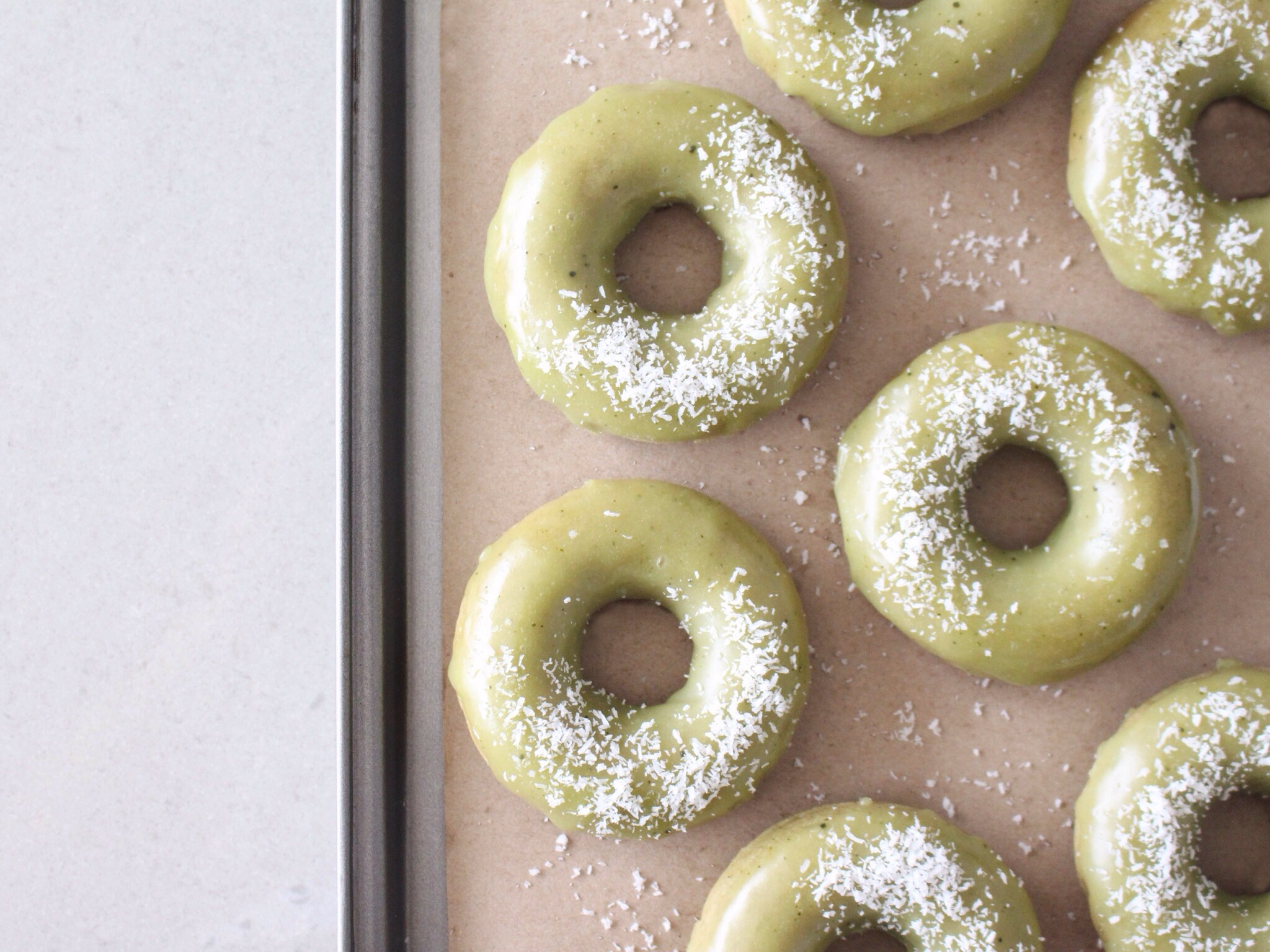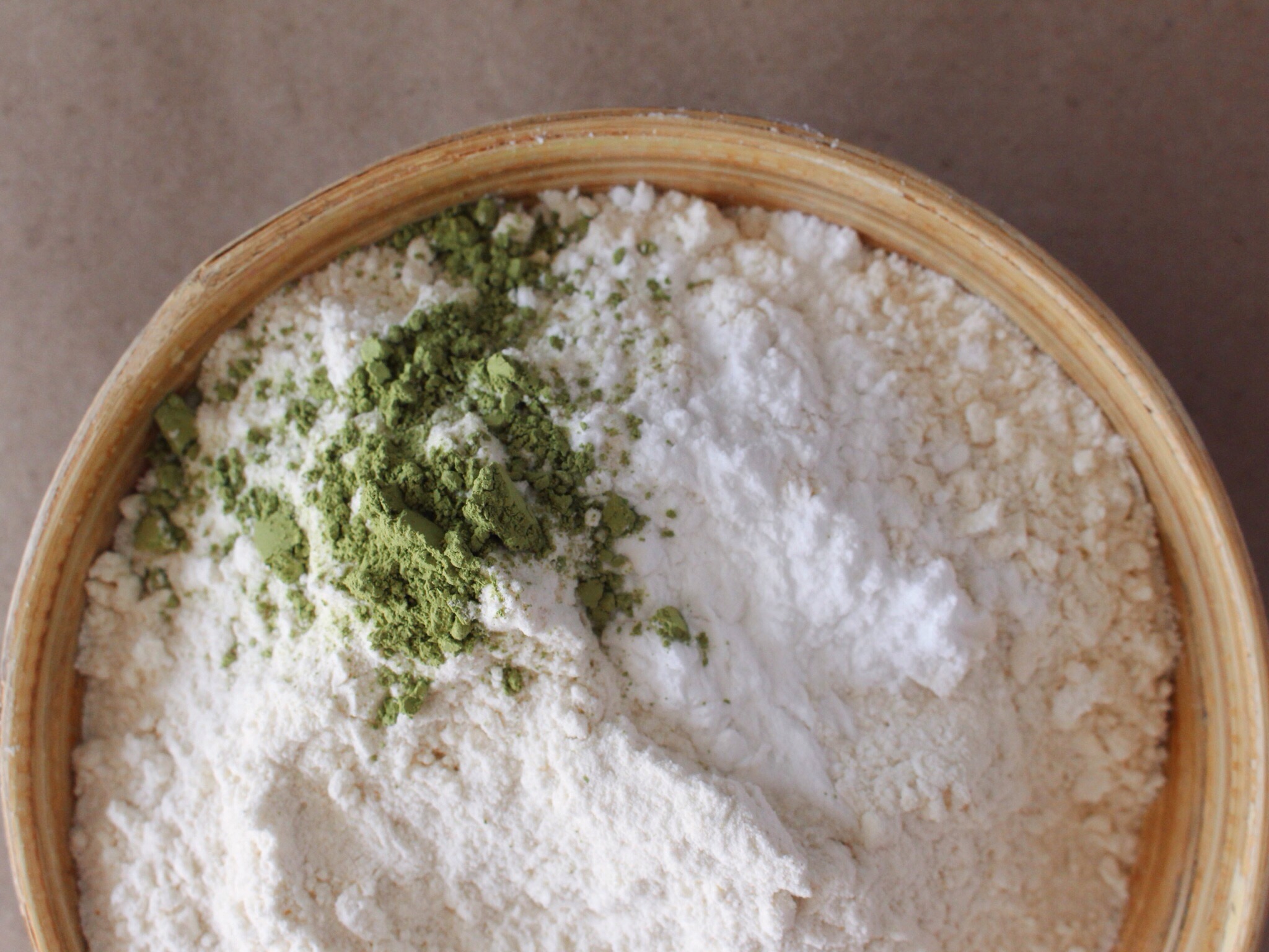 O matcha, basicamente, é um tipo de chá verde que é moído até virar um pó bem fino. Ele é conhecido pelas suas propriedades antioxidantes, calmantes etc e etc, mas o principal motivo para eu resolver fazer um donut com um chá em pó não foi só seu sabor floral ou esses incríveis benefícios para o organismo, foi na verdade sua cor. O matcha possui mais clorofila que o chá verde comum, que é exatamente a pigmentação verde que deu cor à massa e à cobertura.