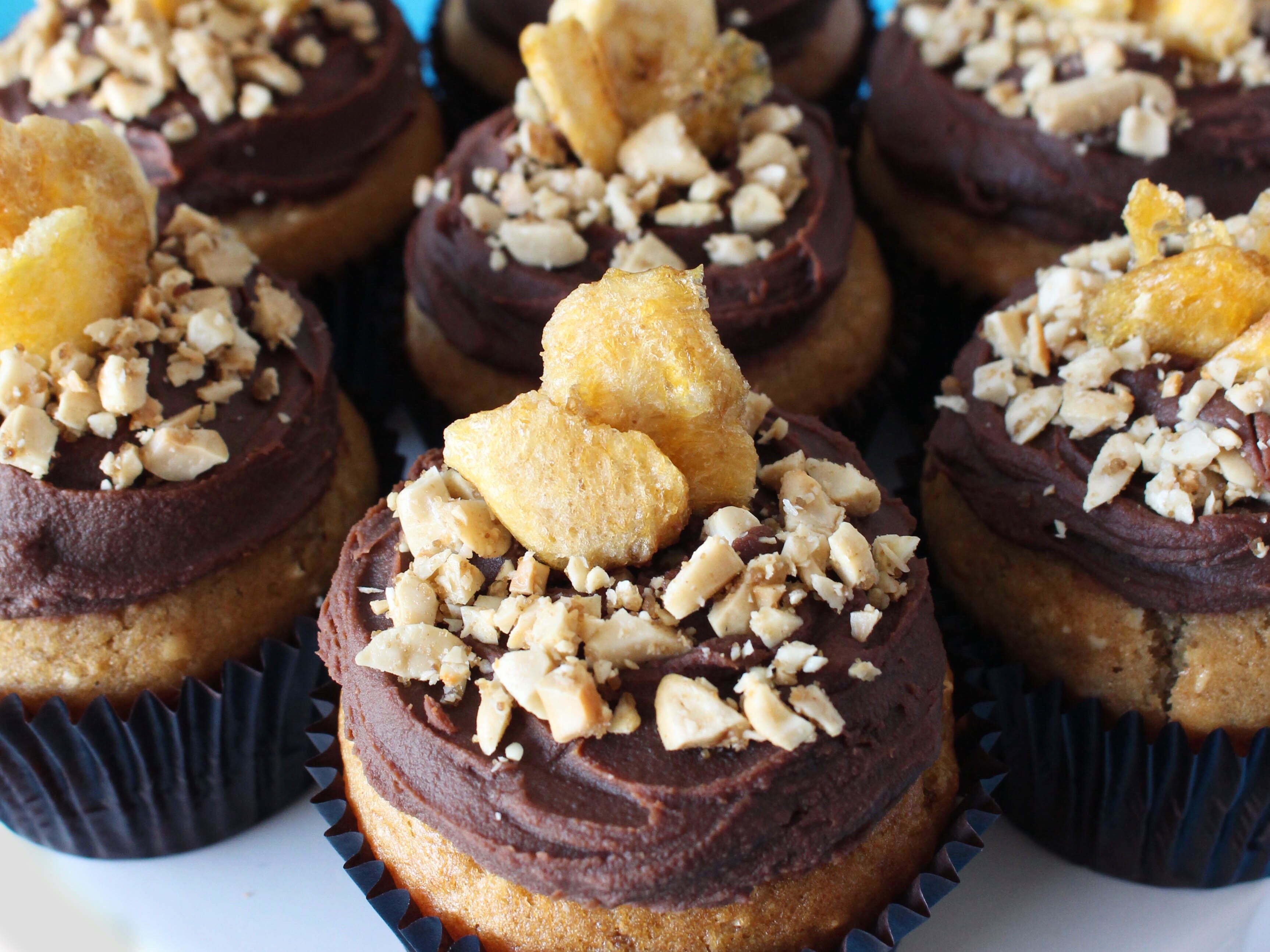 Voltando ao assunto, inspirado em algo mais nível cupcake wars, saiu um combo de banana, chocolate e castanha de caju. O plano era fazer uma cobertura que não levasse açúcar de confeiteiro e que não ficasse granulosa, é por isso que o ganache seria a escolha perfeita. Caso considere castanhas picadas e incorporadas à massa não o suficiente, eu indicaria rechear seus bolinhos com pasta/creme/manteiga de castanha de caju.