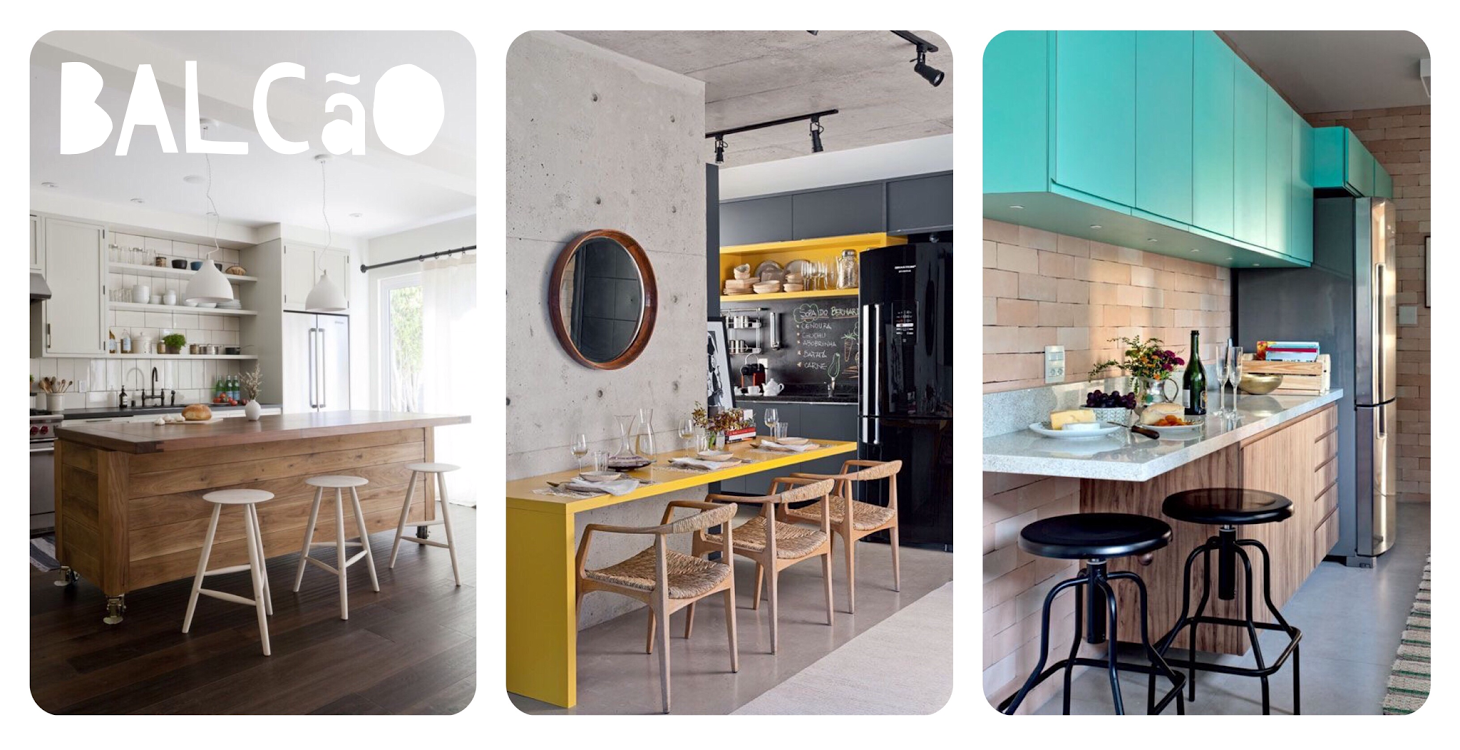 Cozinha Americana é a opção mais fofa/prática/moderna para apartamentos e ambientes pequenos. Você pode abrir totalmente a cozinha para a sala, fazer uma “janela” ou apenas colocar um balcão. O meu apartamento hoje tem a cozinha toda a aberta para a sala, com uma mesa no centro – mas estou planejando colocar um balcão com banquetas.