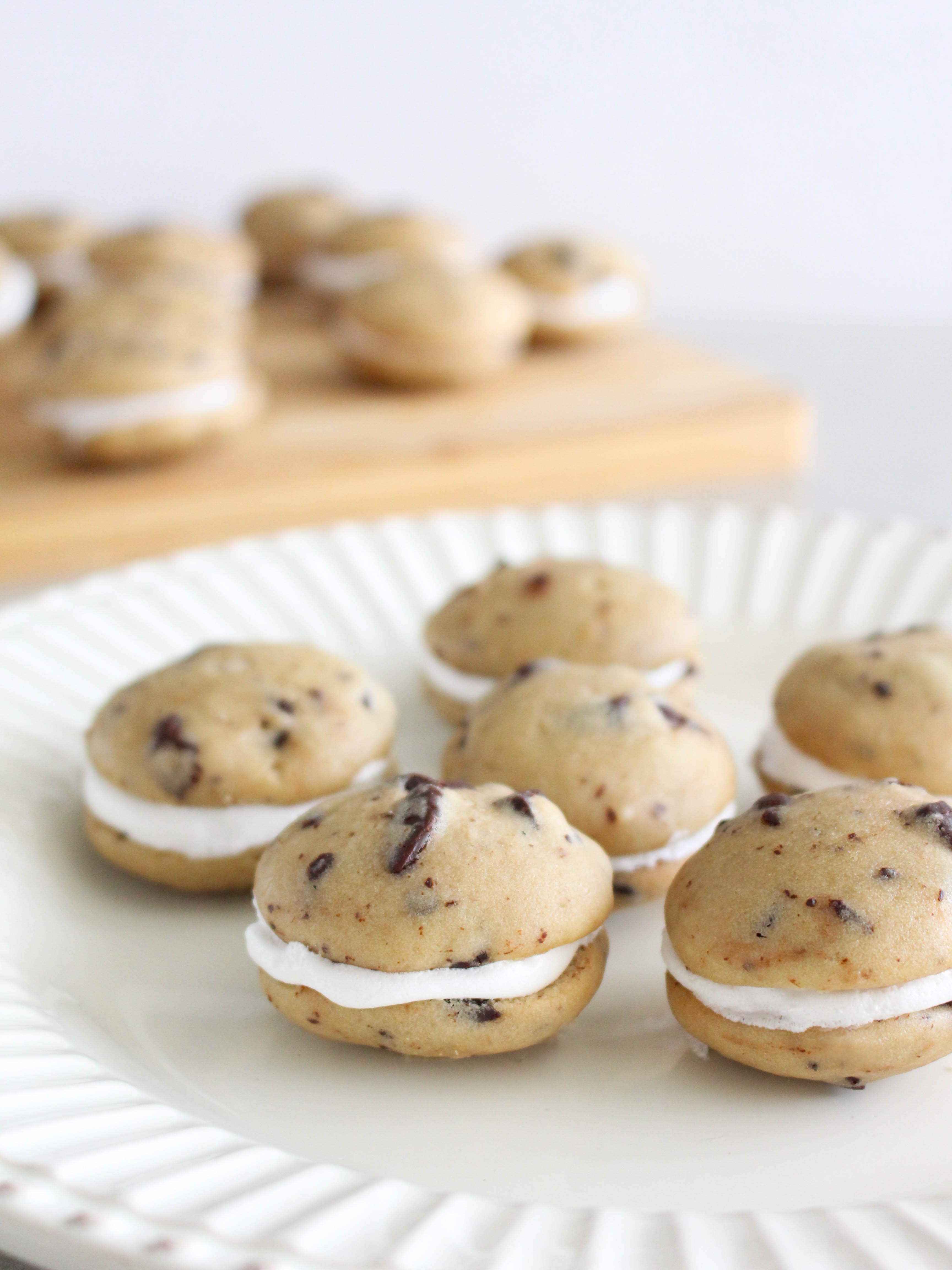 Se você viu as fotos da receita e agora está decepcionado por as whoopie pies não serem crocantes, você pode fazer esse cookies veganos que já ensinei aqui no blog e recheá-los. Com essa sugestão feita, eu ainda acho que vale -muito!- a pena experimentar esses falsos cookies/ bolos/ sanduíches, não só porque essa massa com açúcar mascavo e pedaços de chocolate fica muito boa, mas também porque comer bolo + cobertura nesse formato é uma experiência completamente diferente do tradicional layer cake.