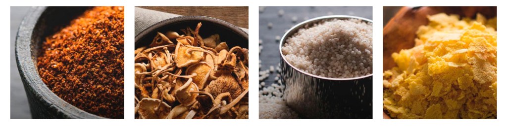 Os ingredientes disponíveis para pagamento via twitter são: Pimenta Baniwa, Cogumelos Yanomamis, Mini Arroz e Farinha de Milho. Esses da fotinho abaixo: