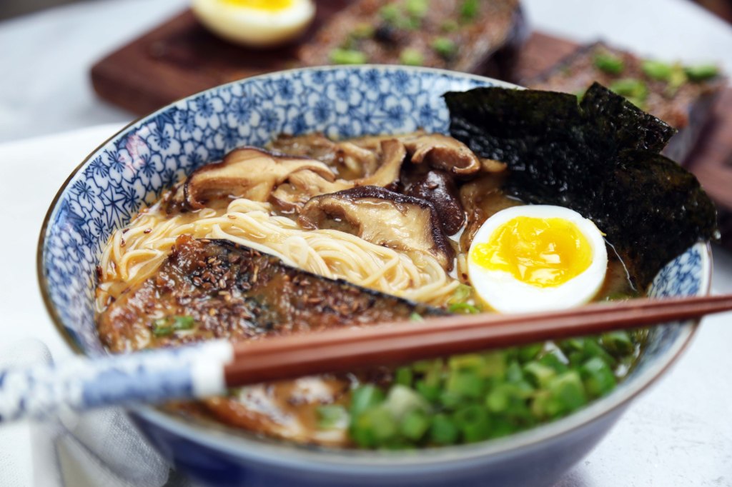 Como sei que é uma receita super tradicional, e que o caldo de porco, usado nos restaurantes orientais, é mega elaborado, fiz a minha versão vegetariana, que ó, garanto que ficou tão incrível quanto a versão original.