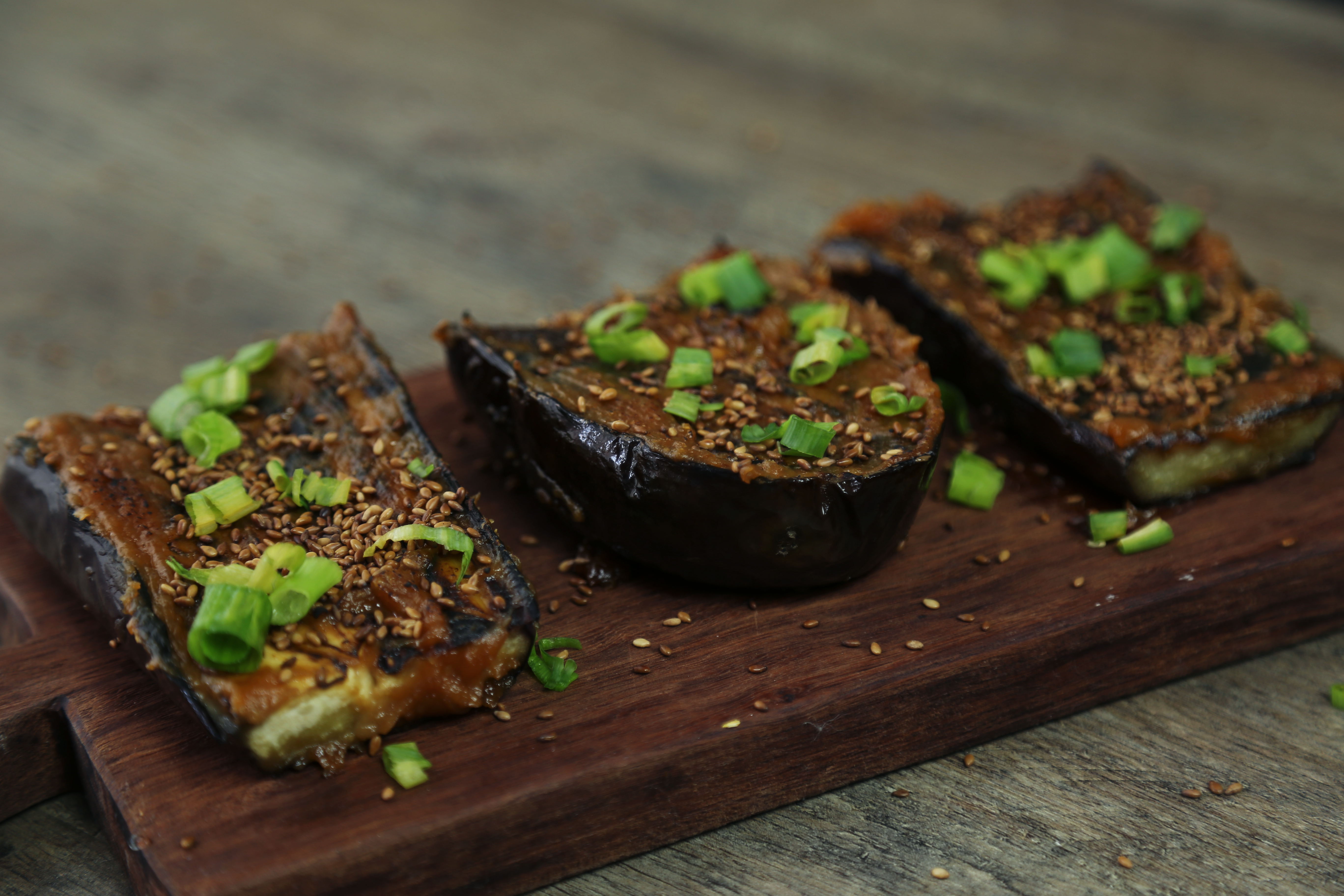 Tem diquinhas importantes que deixam essa Berinjela no Missô ficar show e uma delas é o jeito de cortar pra entrar bastante missô na parte interna da berinjela.