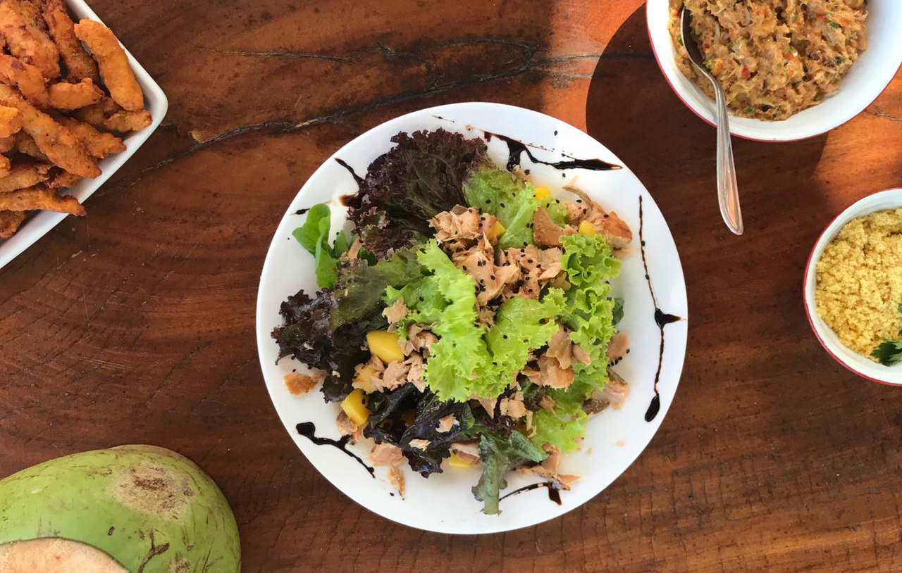 A Moqueca é DIVINA, e o purê de banana da terra conquistou o meu coração, sem dúvida nenhuma a melhor coisa que comi em terras alagoanas! As farofinhas que acompanham são de comer rezando! E o prato serve pelo menos 4 pessoas.