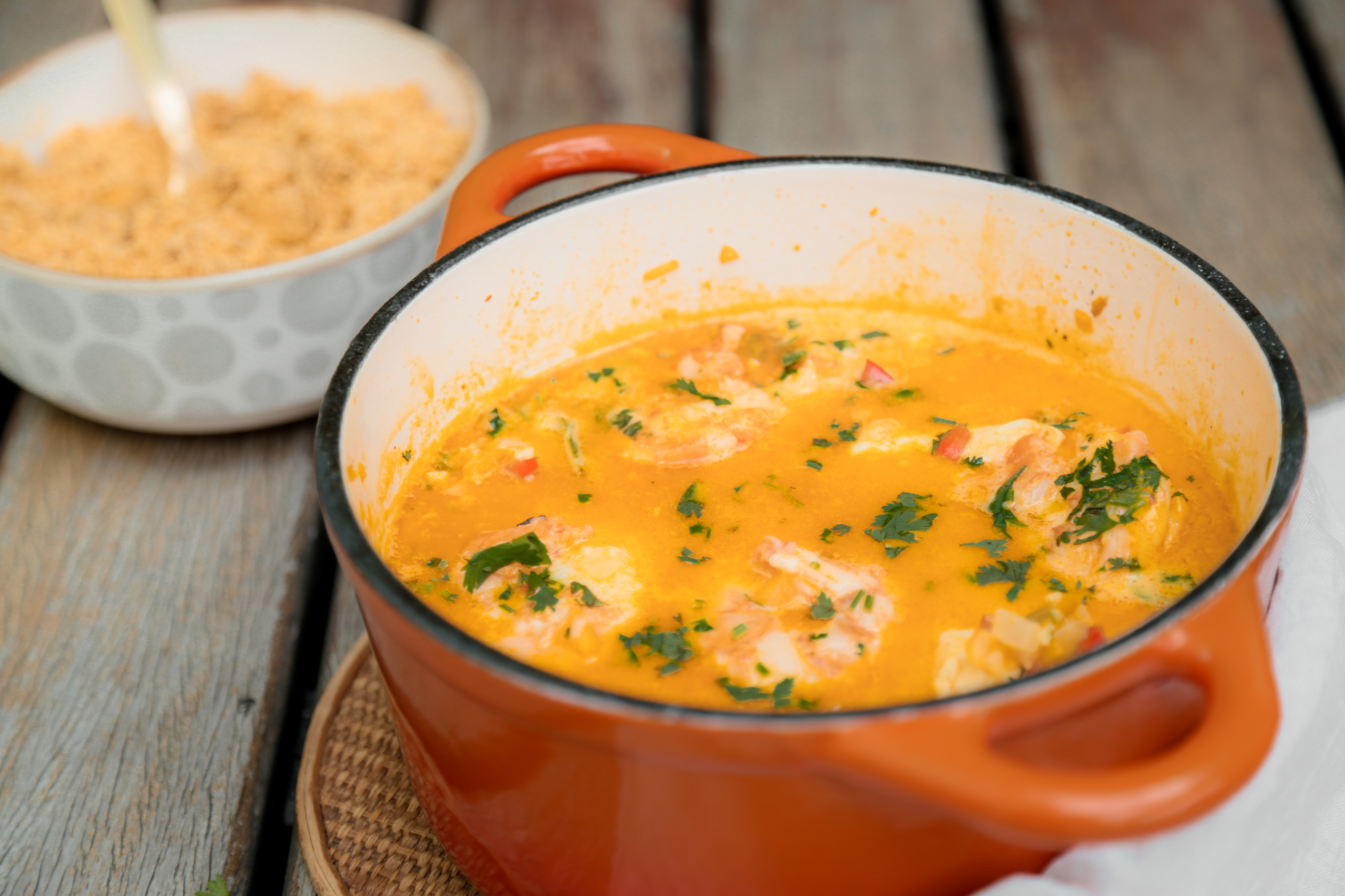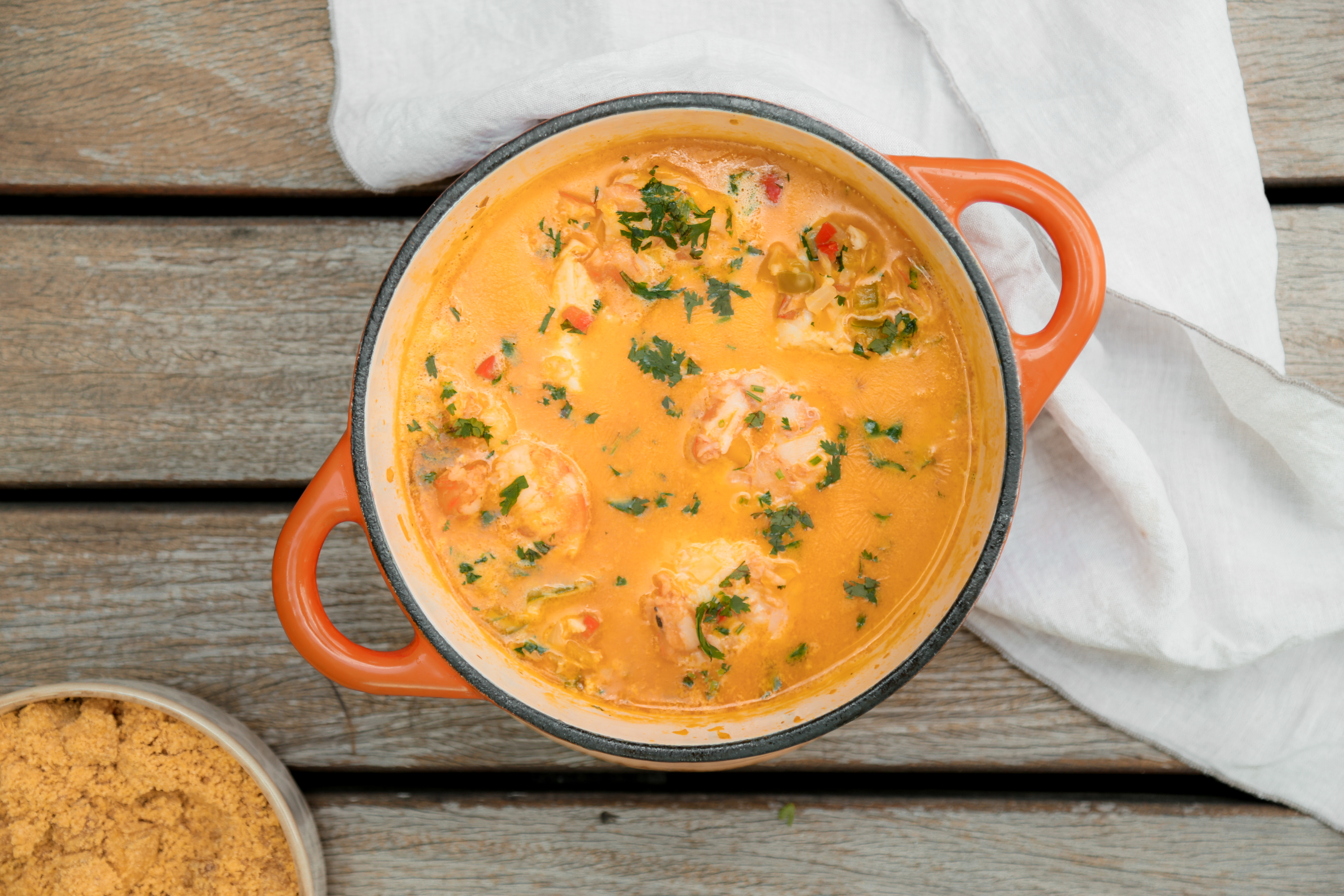 Quer sentir um gostinho da Bahia? Faz uma moqueca baiana, de peixe, com dendê, coentro e camarão :)