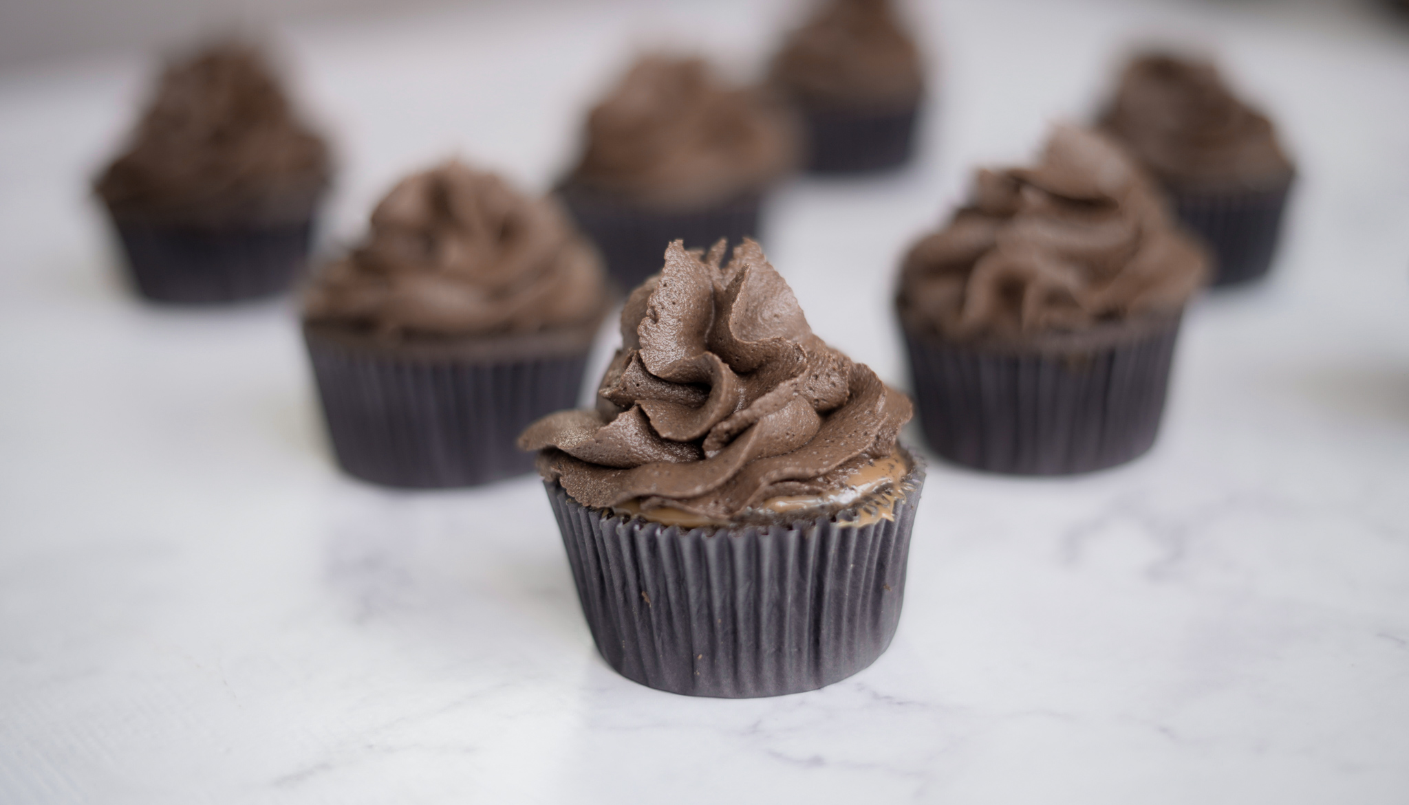 Cupcake de Chocolate super recheado com Doce de Leite e uma cobertura bem espetacular de Buttercream de Chocolate