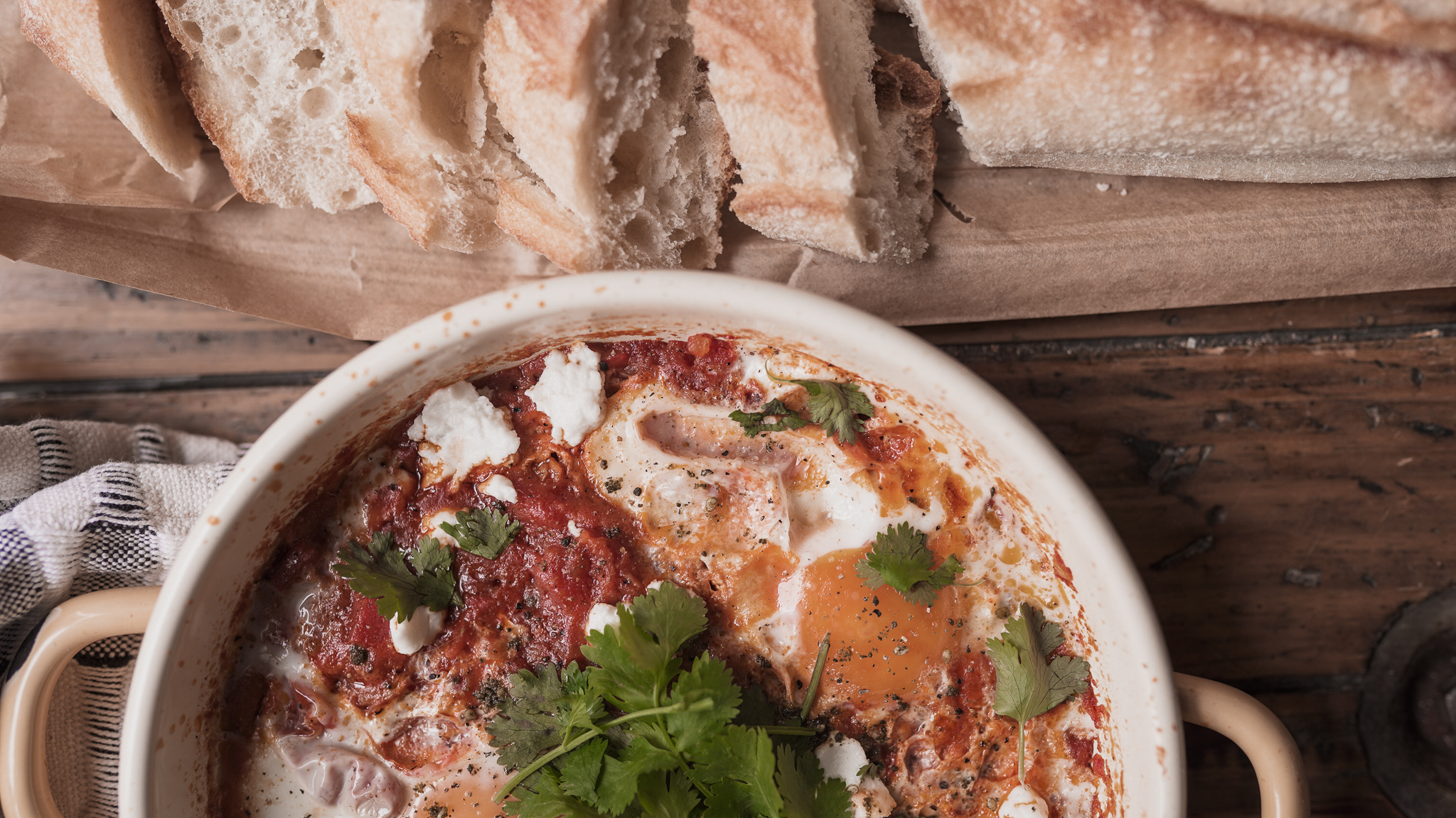 Shakshuka nada mais é do que ovos cozidos em um molho de tomate bem condimentado.