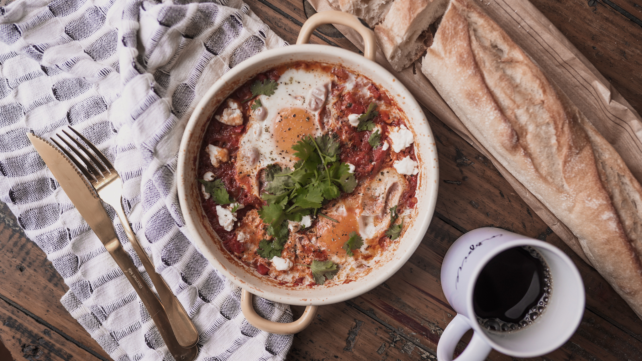 A Shakshuka acompanhada de pão e um bom café, é um ótimo jeito de começar o dia :)