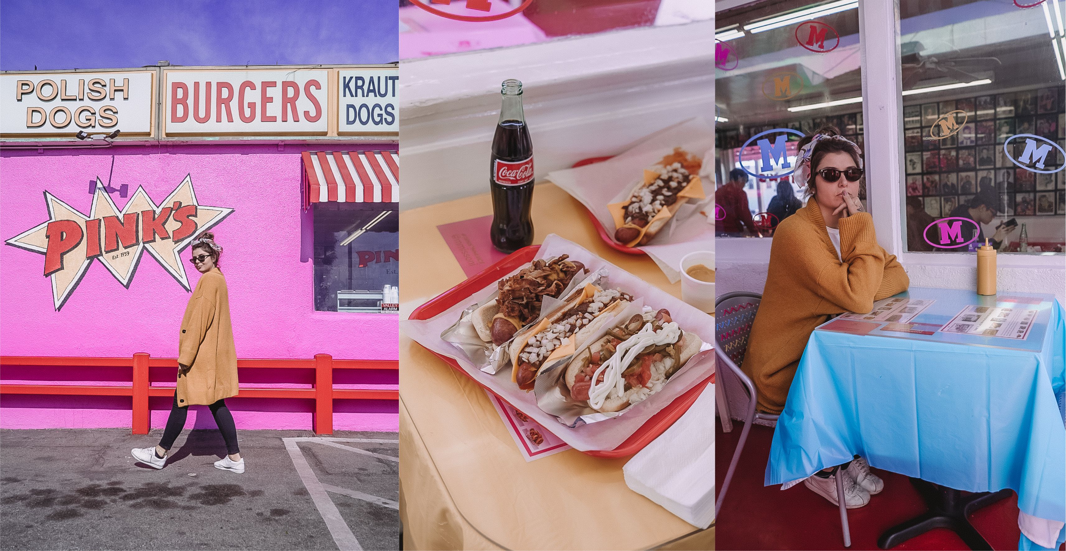 O Pink’s Hot Dog tem aquela decoração típica de fast foods americanos que você vê nos filmes, sabe? Mesinhas com guarda sóis na parte externa, um logo super anos noventa, toldinho vermelho e branco na frente do restaurante, bem vibes América (ótimo cenário para fotos)! A dona, Gloria Pink, é um verdadeiro ícone! E se você der sorte, pode encontrar ela andando pra lá e pra cá, com seu terninho extravagante cor-de-rosa, a bolsinha e a capa do celular em formato de hot dog, esbanjando simpatia! Ah! Nas paredes você vai ver muitos quadrinhos com fotos de famosos que já comeram um dogão no Pinks, como Katy Perry, Robin Williams, Jimmy Fallon, entre tantos outros…
