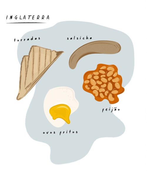 O café da manhã dos ingleses é conhecido como Full English Breakfast. E o que não pode faltar na mesa da tradicional família inglesa? Salsicha (de super qualidade), ovos com gema mole e clara branquinha, feijão branco com um molhinho de tomate adocicado (você super encontra esse feijão branco enlatado por lá, inclusive), torradas feitas na frigideira (bem tru) e o super tradicional black pudding (ou, como conhecemos, chouriço). Sempre acompanhado de um bom chá preto.