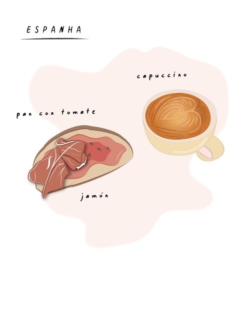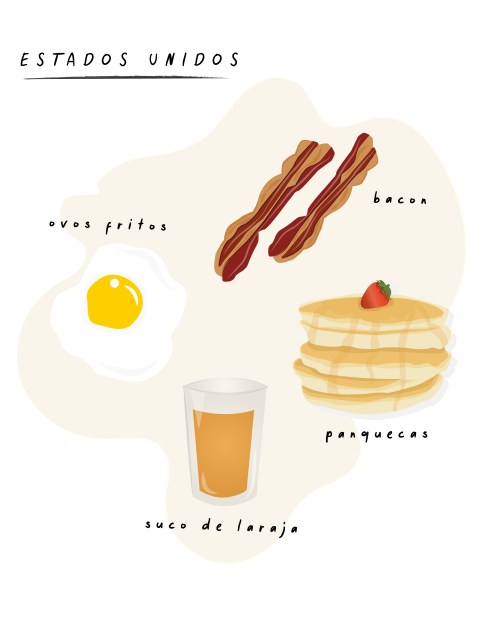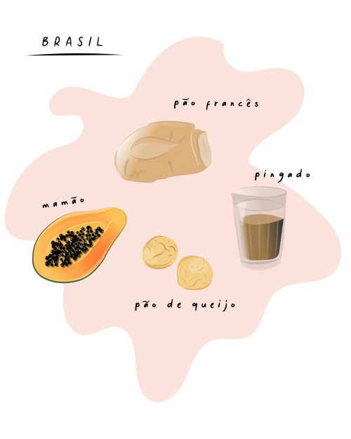 E finalmente, mas não menos importante, o café da manhã brasileiro! Na verdade, eu corrigiria aqui para o café da manhã tradicionalmente paulistano. Até porque, já viajei muito pelo Brasil, e sei que o café da manhã pode variar muito de uma região pra outra, por exemplo, sei que no norte eles comem tapioca com tucumã, no Piauí não pode faltar o famoso cuscuz, no sul o chimarrão é indispensável… são “diversos Brasis” em um país só, então fica difícil resumir tudo em apenas uma ilustração.
