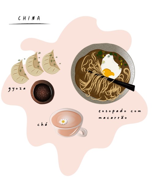 Aqui eu vou falar sobre uma experiência específica que eu vivi, porque a China é tão grande, que tenho certeza que o café da manhã pode variar muito de uma região pra outra. Quando fui visitar a Muralha da China, fiquei hospedada na casa de uma família tradicional chinesa, e todos os dias pela manhã, a mãe nos servia guiozas (gyozas ou dumplings), um ensopado de frango com macarrão e chá. Pode parecer meio esquisitão, mas é o que tradicionalmente eles comem por lá. E esse, acho que foi o café da manhã mais tru que já comi na vida. he he